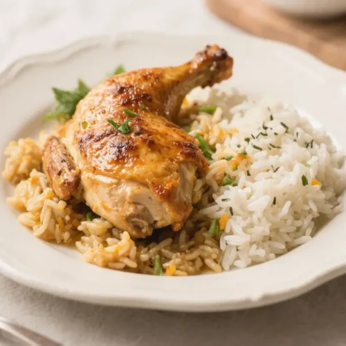 There’s something honest and satisfying about baked chicken and rice. It’s simple, comforting, and the kind of meal you can make on a busy weeknight without fuss. Everything cooks in one dish, the flavors meld, and you get juicy chicken with fluffy, perfectly seasoned rice.