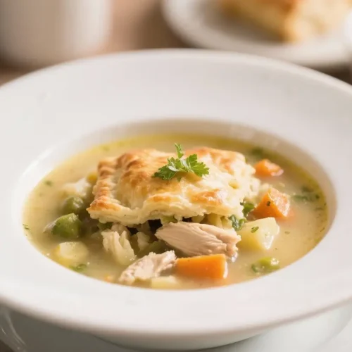 This is the kind of soup that makes a chilly evening feel better the second it hits the table. Think of all the cozy flavors of a classic chicken pot pie, but in a bowl you can ladle and slurp. It’s rich without being heavy, creamy without being fussy, and full of tender chicken and vegetables.