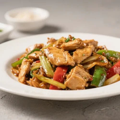 The sauce is balanced—savory soy, a little sweetness, and a bright finish from rice vinegar. The vegetables stay crisp, and the chicken is tender, not dry. You won’t need special equipment beyond a large skillet, though a wok is great if you have one.