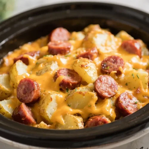Dump and Go Crockpot Cheesy Potatoes and Kielbasa Sausage is the definition of easy comfort food. It’s rich, creamy, and satisfying, with familiar flavors that feel like a warm hug. The slow cooker does all the heavy lifting, and the recipe leaves plenty of room to customize.