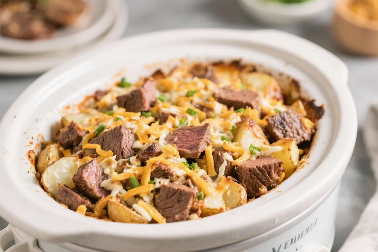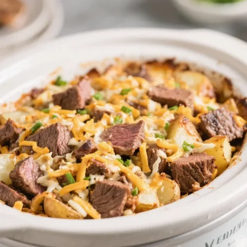 Dump and Go Crockpot Loaded Steak & Potato Bake – Easy, Hearty, and Comforting