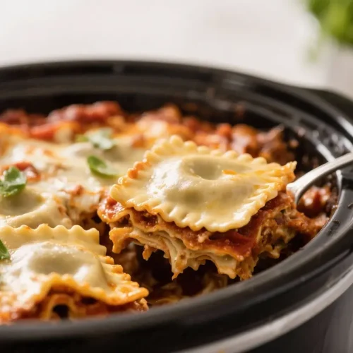 This is the kind of dinner you throw together when you’re short on time but still want something warm and satisfying. No boiling noodles, no fussy layering, and no babysitting the stove. Just a few pantry staples, a bag of frozen ravioli, and your slow cooker doing all the heavy lifting.